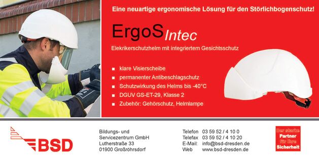 Seit diesem Monat können wir Ihnen drei Varianten aus der ErgoS-Familie anbieten, die in einem Helm integriert sind. Die Gruppe der BSD-ErgoS Intec, bestehend aus: BSD-ErgoS Intec, Prüfung nach Boxtest (GS ET 29) Klasse 2 BSD-ErgoS Intec Plus, Prüfung nach Boxtest (GS ET 29) Klasse 2, ATPV 14 cal/ cm² BSD-ErgoS Intec Power, ATPV 28 cal/ cm², EN 166